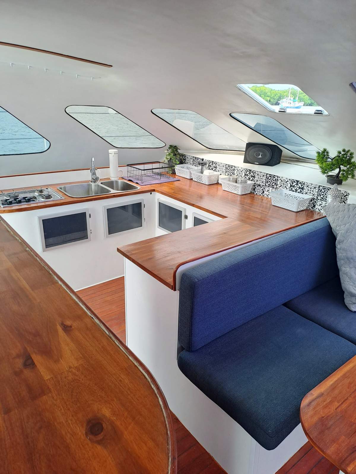 - LOA: 13.2m Beam: 7.38m Draft: 0.46m