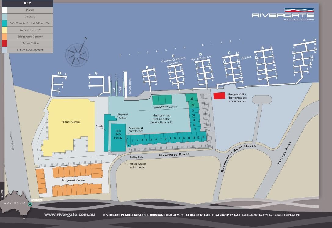 * Rivergate Marina was recently voted in the top 3 Superyacht Marinas in the South Pacific.